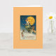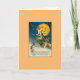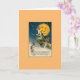 Carte de voeux vintage / Victorian Halloween. Jolie sorcière chevauchant son balai devant une lune grinçante ! Tous les Hallowe'en ! Quand Le Monde Est Entouré De Bois D'Oeuvre, Et Que La Lune Est En Pleine Voile, Si Vous Passez Entre Les Rideaux, Vous Verrez Des Sorcières Passer !