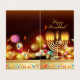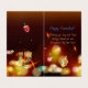 Bonne Hanoukka belle carte de voeux juive de vacances. Arrière - plan juif de Holiday Hanoukka avec les symboles traditionnels de Chanoukah - dandelles en bois (dessus filant), beignets, menorah d'or - Hanoukkiah, bougies, étoile de David et lumières brillantes papier peint motif. Décoration du Festival d'Hanoukka. Jérusalem, Israël. Invitations & Papeterie, Cartes de voeux, Fêtes et saisons, Hanukakh. Conception avec modèle texte. Personnalisez-les en ajoutant ou en modifiant du texte.