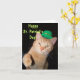 Ce St mignon, carte de voeux du jour de Patrick a un chat tigré orange utiliser un casquette vert de lutin et onduler sa patte. Cette carte mignonne est décorée des shamrocks sur l'intérieur. Cette conception peut être réelle acheté ou vous pouvez l'employer comme modèle pour faire votre propre conception unique. Juste téléchargez vos propres photographies ou graphiques à ce modèle et ajoutez le texte pour finir votre conception si désiré et achat.