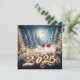 Célébrez la magie du Nouvel An avec cette carte époustouflante, représentant une forêt enneigée illuminée par des lumières dorées chaudes. Un message lumineux "Joyeux Nouvel An 2025" est inscrit avec élégance sur la neige, entouré de décorations festives, de cadeaux scintillants et de cerfs dorés bondissants.