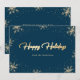 Cartes de vœux élégantes bleues et dorées avec des flocons de neige et de la neige sur fond bleu. Un beau titre écrit à la main avec un effet de dorure à la feuille au centre. Personnalisez facilement ces cartes de vœux avec flocons de neige bleus et dorés avec le nom de votre famille et votre message. Les demandes personnalisées sont les bienvenues.