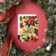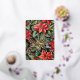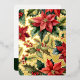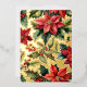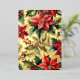 Le devant présente une illustration aquarelle pittoresque de poinsettias rouges et de branches de houx sur un fond de feuille d'or véritable.