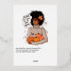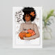 Carte de voeux de Thanksgiving d'automne - saison des récoltes avec une influence afro-américaine personnalisable selon vos spécificités. Accueillez la saison douillette avec cette carte élégante représentant une femme afro-américaine tenant une collection de citrouilles, ornée d'une feuille d'automne dans ses boucles naturelles. La citation fantaisiste « Oh, automne, c'est agréable de vous revoir », ajoute du charme, tandis que l'année "20XX" personnalisable et le cadre minimaliste créent une touche moderne et personnelle. Parfait pour les salutations d'automne ou les voeux de Thanksgiving.