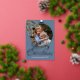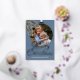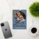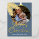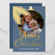 Carte de voeux de Noël classique contemporaine avec aiguilles de pin blanc en fer feuille motif sur un arrière - plan bleu gris, avec véritable feuille d'or Joyeux voeux de Noël. Avec l'option et la place pour customiser le texte, le nom de famille et la date de l'année, et ajouter une photo personnelle de votre choix sur le devant, et un message de salutation de saison personnalisable sur le côté arrière de la carte.