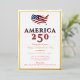 On July 4, 2026, America celebrates the most important milestone in its history—250 years of American Independence. Celebrate the America’s historic 250th milestone with this elegant patriotic card. Featuring 2026 with a festive styled design with the American flag and a customizable holiday greeting, this America 250 design blends the Semiquincentennial Anniversary greetings and election-year pride.