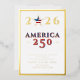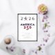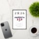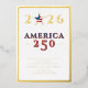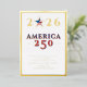 Le 4 juillet 2026, l'Amérique célèbre l'étape la plus importante de son histoire - 250 ans d'indépendance américaine. Célébrez ce jalon historique avec cette élégante carte patriotique. Avec un design festif mettant en vedette l'année 2026, le drapeau américain et un message de vacances personnalisable, ce design America 250 allie les vœux du Sémi-quincentenaire et la fierté de l'année électorale.