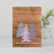 Carte contemporaine classique de la saison des fêtes de Noël avec un motif d'arbre de Noël de couleur bleu pastel clair, rose et violet sur des planches de bois style shiplap altérées, et un texte « Joyeux Noël » en véritable feuille d'or rose. Avec la possibilité de personnaliser ou de personnaliser avec le nom de votre famille (ou les noms individuels) sur le devant, et un message de vœux de saison personnalisable au verso de la carte.