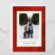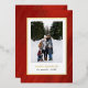 Célébrez la saison en beauté avec cette carte de Noël élégante avec un velours rouge riche et une texture granuleuse et subtile, rehaussée d'une véritable feuille d'or pour une touche de luxe. Le design avant présente un cadre blanc propre qui met en valeur votre meilleure photo verticale de famille ou de couple, ce qui en fait la pièce maîtresse de la carte. Le message de vacances en or ajoute un charme festif et intemporel. Au contraire, il y a de la place pour deux photos de paysages et un espace pour inclure un message personnalisé, ce qui en fait la façon parfaite de partager votre joie de vacances avec les proches