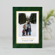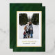 Célébrez la saison en beauté avec cette carte de Noël élégante avec une teinte verte et profonde et une texture granuleuse, accentuée d'une véritable feuille d'or pour une touche de luxe. Le design avant présente un cadre blanc propre qui met en valeur votre meilleure photo verticale de famille ou de couple, ce qui en fait la pièce maîtresse de la carte. Le message de vacances en or ajoute un charme festif et intemporel. Au contraire, il y a de la place pour deux photos de paysages et un espace pour inclure un message personnalisé, ce qui en fait la façon parfaite de partager votre joie de vacances avec les proches