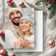 Do Tell A Belle's tropical Christmas card est parfait pour envoyer à des amis et à la famille cette saison. Il présente mon flamant rose aquarelle original avec arc vert et blanc. Le mot "Bonne année" est placé dans une feuille d'or pressée à la lettre. Personnalisez avec votre libellé et la photo de votre couple, la photo de votre animal de compagnie ou la photo de votre famille. Un choix de plage pour vos vacances. Pour voir d'autres dessins de Victoria Grigaliunas, visitez www.zazzle.com/dotellabelle