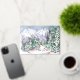 Carte De Vœux En Aluminium Aquarelle Paysage de montagne de neige avec pins
