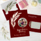 Cette douce et élégante aquarelle feuille d'or avec feuille d'or rose, une photo en anneau et un "Joyous Holiday" salutations sur fond rouge profond fait une carte de voeux de vacances impactée et élégante. La feuille d'or et le design simple de feuille d'aquarelle est élégant et pourtant simple et le flux de sortie avec mouvement gracieux. Vous pouvez ajouter votre propre photo et un nom de famille ou un nom individuel.