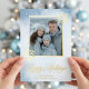 Découvrez la magie des vacances avec notre carte photo de Noël élégante et personnalisable. Ce magnifique design présente un superbe arrière - plan de style aquarelle dans le bleu cool et le blanc, qui rappelle une chute de neige hivernale. Le point fort est un cadre en or-feuille qui présente parfaitement votre photo préférée. Décorée de délicats flocons dorés chatoyants, cette carte est un moyen intemporel d'envoyer des voeux chaleureux à des amis et à la famille. Personnalisez-le avec votre propre photo et nom de famille pour un accueil de vacances unique et mémorable. Parfait pour les nouveaux couples, les familles ou tous ceux qui veulent partager un moment spécial ce Noël. Créé par Simply Farmhouse Press.