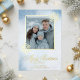 Découvrez la magie des vacances avec notre carte photo de Noël élégante et personnalisable. Ce magnifique design présente un superbe arrière - plan de style aquarelle dans le bleu cool et le blanc, qui rappelle une chute de neige hivernale. Le point fort est un cadre en or-feuille qui présente parfaitement votre photo préférée. Décorée de délicats flocons dorés chatoyants, cette carte est un moyen intemporel d'envoyer des voeux chaleureux à des amis et à la famille. Personnalisez-le avec votre propre photo et nom de famille pour un accueil de vacances unique et mémorable. Parfait pour les nouveaux couples, les familles ou tous ceux qui veulent partager un moment spécial ce Noël. Créé par Simply Farmhouse Press.