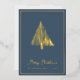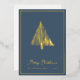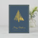 Carte de Noël luxeuse avec sapin de Noël abstrait en feuille d'or et fond sarcelle... Le devant de notre carte de Noël luxeuse présente un dessin au trait abstrait en feuille d'or véritable représentant un sapin de Noël dans le style scandinave au-dessus du texte en écriture "Joyeux Noël" et de votre nom et de l'année en typographie élégante sans empattement... sur un fond sarcelle riche. Le verso de la carte est noir et blanc, affichant le même arbre en noir au-dessus de votre message de vacances personnel et de vos signatures, également en encre noire sur fond blanc. Tout le texte au recto et au verso de la carte peut être facilement révisé sur le modèle de personnalisation.