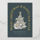 Arbre de Noël enneigé aquarelle festif, carte de vacances moderne à feuille d'or.