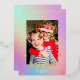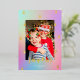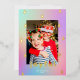 Ce carte photo de vacances coloré et moderne dispose d'un arrière - plan en arc-en-ciel en pente, de simples formes d'arbre de Noël encadrant une photo verticale, et l'accueil "joyeux" dans la typographie moderne. Cette conception accepte une photo verticale. Sur le dos se trouve le même arrière - plan coloré en dégradé. La feuille d'or levée sur cette carte brille vraiment et ajoute cette touche spéciale à vos cartes de fin de année. L'huile est disponible en or, argent et or rose. Voir notre collection de cartes de voeux pour plus d'articles!