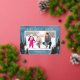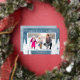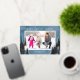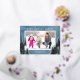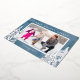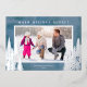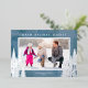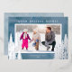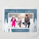 Une simple carte de Noël photo avec un fond aquarelle bleu accentué de véritables arbres en feuille d'argent et de pins. Le design offre un cadre photo horizontal avec le vœu "Meilleurs vœux de fêtes".