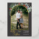 Cette conception présente du houx et de l'eucalyptus aquarelle autour d'une image cintrée avec un cadre en feuille d'or.