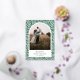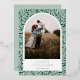 Cartes de fin de année de photo en feuille d'argent moderne avec un arrière - plan de feuilles en feuille d'argent et de baies en feuille d'argent, avec votre photo en forme d'arc. Personnalisez davantage avec le titre modifiable, le message d'approbation et de retour.