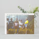 CONCEPTION : Un accueil en feuille d'or - joyeux noël - est au-dessus de la photo dans une grande police de caractères tendance. La photo est hors du centre, et la signature de la famille entoure la bordure blanche. Un accent de bordure en or est également inclus. — CONCEPTION ARRIÈRE : La conception arrière comprend un Arc d'art rétro MCM dans les tons vert olive. Les couleurs peuvent être changées dans l'espace design avancé.