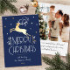 Carte De Vœux En Aluminium Art Déco Reindee de Noël Photo Deep Blue Gold