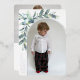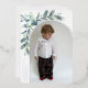 Elégante carte photo de Noël. Dit Joyeux Noël dans un vrai papier d'aluminium. La photo est entourée d'un cadre voûté en forme de dôme agrémenté de baies vertes d'hiver. Le dos de la carte a une autre photo et un espace pour ajouter vos souhaits de vacances. Choisissez vos photos préférées, ajoutez votre nom et vos souhaits, et commencez à envoyer de la joie à vos proches.