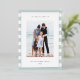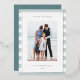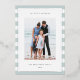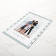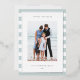 Partagez vos salutations de vacances avec ces cartes photos Hanoukka avec votre photo préférée sur un arrière - plan d'aqua pâle et de rayures blanches avec luxueux garniture en feuille d'argent. Une zone de message modifiable vous permet de customiser votre Chanukah ou votre salutation de vacances. Ajoutez votre nom de famille ou vos noms en dessous avec l'année.