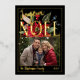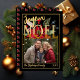 Simple feuille réelle élégante photo de famille "Joyeux Noël" (Joyeux Noël) poinsettia design floral avec une seule photo rectangulaire design vacances de Noël. Le dos comporte un motif poinsettia.