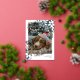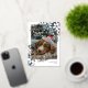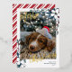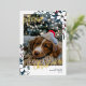 Joli carte photo de Noël fleuri Joyeux imprimé avec votre photo, feuille d'or, votre nom et l'année ainsi que de jolies fleurs blanches et rouges avec verdure et baies.