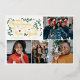 Carte photo traditionnelle de Noël avec Joyeux Noël et un heureux Nouvel An en papier doré avec quatre photos de votre famille et de la verdure et des baies rouges.