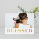 Béni ! Envoyez des salutations festives cette saison de vacances avec cette carte de vacances personnalisable en feuille d'or. Il présente une typographie audacieuse. Personnalisez en ajoutant une photo, des noms, l'année et d'autres détails. Cette carte de vacances photo de typographie moderne est disponible dans d'autres cartons.