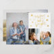 Carte en or personnalisée Joyeuse et brillante. Le design présente un fond blanc simple avec 3 photos de portrait à l'avant et une photo de paysage à l'arrière. L'avant de la carte comporte le nom de la famille et l'année.