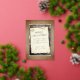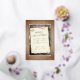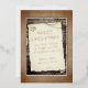 Carte de vacances à motif de bois rustique et de papier parchemin ancien avec une écriture en véritable feuille d'or rose - personnalisez le texte avec votre texte.