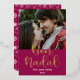 Pour modifier le texte et ajouter votre propre photo, cliquez sur "Personnaliser". Cette carte de vacances élégante présente le texte écrit sur feuille d'or - Bon Nadal, qui est Joyeux Noël en catalan. Le verso de la carte présente un design élégant et saisonnier.