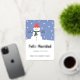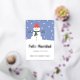 Carte de vœux de fêtes espagnoles avec illustration moderne de bonhomme de neige d'hiver. Texte personnalisable