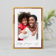 Un design chic et élégant de cartes de vacances Kwanzaa avec une seule photo verticale ou portrait, bordée de garnitures en feuille d'or et rayures organiques dans les tons taupe, acajou et cacao. "Happy Kwanzaa" apparaît en écriture manuscrite. Personnalisez avec votre nom de famille pour la touche finale parfaite à ces beaux cartes photos de vacances.