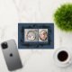 Welcome your little one and share holiday joy with the Botanical Frame Winter Foliage New Baby Foil Holiday Card, a festive birth announcement designed with elegance and seasonal warmth. The front features two custom photo placeholders framed by a beautifully illustrated winter foliage border, pressed in real foil—available in gold, silver, or rose gold for a luxurious shimmer. Set against a dark blue background, the design feels both celebratory and timeless. Personalize the back with your baby’s details and a heartfelt message to family and friends. A refined and festive way to introduce your newest arrival during the holiday season.