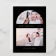 Cette belle carte de Noël présente une grille de photos à arc moderne et deux de vos photos de famille préférées, avec une véritable impression de points enneigés en feuille d'or sur le devant avec un fond noir élégant. Le dos présente une impression de points noirs et blancs coordonnés. Ce design festif est un moyen parfait pour envoyer des vœux de fêtes à la famille et aux amis !