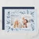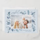 Cette carte de vacances simple et élégante d'inspiration nature présente votre photo horizontale ou paysagère préférée, ornée aux coins d'épices d'aquarelle bleue glacée gracieuse aux accents de feuille d'argent. "Joyful" apparaît en haut à gauche en écriture manuscrite chic, avec vos noms et l'année en bas à droite. Un design botanique élégant pour vos salutations de Noël 2022.