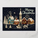 Carte De Vœux En Aluminium Broderie Noël Snowy Village Scène Bleu