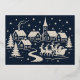 Carte De Vœux En Aluminium Broderie Village de neige de Noël Scène Bleu Blanc