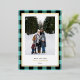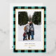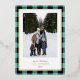 Envoyez vos voeux de vacances avec ces cartes de Noël de luxe, avec votre photo verticale préférée sertie contre un motif plaid turquoise vert clair dessiné à la main et vert noir, encadré par une bordure en feuille d'or véritable. Customisez votre message de vacances avec un style de lettrage moderne dans la zone de texte modifiable, et ajoutez votre nom de famille dans une véritable feuille d'or ! ! ! Le dos de la carte offre de l'espace pour une photo supplémentaire et un message de vacances personnalisé