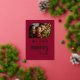 Carte De Vœux En Aluminium Burgundy & Gold Retro Doodle de Noël Photo