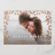 Un carte photo de vacances simple et élégant encadre votre photo horizontale avec une bordure de feuilles et de baies en feuille d'or rose. Personnalisez-vous avec un accueil de Noël ou de vacances (montré avec "toujours joyeux") et vos noms en-dessous. Ajoutez une photo supplémentaire à l'arrière.