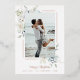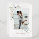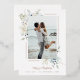 Partagez la joie des fêtes avec cette carte de Noël moderne et élégante représentant un cadre photo de verdure pastel et de baies de Noël bleues. Avec votre choix de véritable feuille d'or rose, d'or ou d'argent.