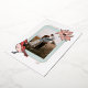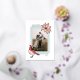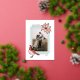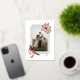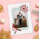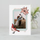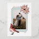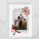 Cette superbe carte de Noël à motif cardinal avec un cadre en feuille métallisée rose doré comporte un texte en véritable feuille métallisée « Happy Holidays » et l'année personnalisable autour d'un cadre géométrique en feuille. L'illustration présente un fond bleu moucheté avec un cardinal mignon dans le coin inférieur gauche et une poinsettia rose dans le coin opposé. Hivernal mais unique, cette carte artistique rose et bleue comporte un espace pour deux photos, une photo en portrait sur le devant et une photo au format paysage au verso. Personnalisez-la avec votre propre message et les noms de famille pour une carte de Noël prête à envoyer, festive et amusante cette année !