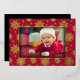 Elégant flocon de neige Photo Frame Foil Carte de vacances. Un script tourbillonnant typographie orthographique Premier Noël et votre nom personnalisable et année aussi en papier réel. Ajoutez votre photo, la superposition de la photo Shadow à l'intérieur du cadre doré donne un effet 3D à la photo et cadre Moderne, classique et traditionnel pays des merveilles hivernales avec des flocons de neige tombant en feuille sur un arrière - plan rouge. Les options de feuille sont Gold, Silver et Rose Gold. Customisez le texte, le texte arrière est facultatif ou supprimez. Un souvenir pour les nouveaux parents, la famille et les amis.