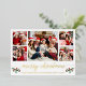 Calligraphie moderne Gold Foil Script 5 Photo Famille Photo Collage Joyeux Noël Carte inclut Watercolor Christmas Holly Berries - Forest Green Back