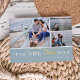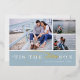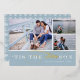 La carte de vacances à thème nautique mignonne présente trois de vos photos préférées dans une mise en page collage, avec "'tis the SEAson" en papier blanc et en feuille d'or en lettrage sur bleu clair côtier.